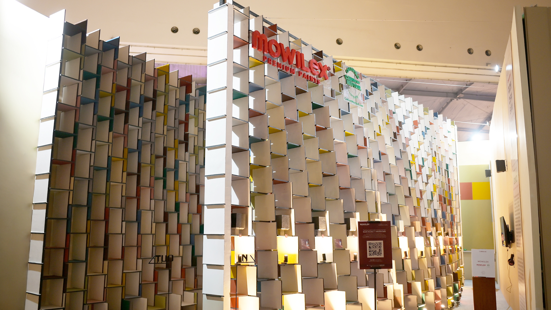 Founder dan Principal Atelier Riri, Novriansyah Yakub, menjelaskan filosofi desain instalasi ini. “Booth kami terdiri dari satu komponen modular yang saling bertumpu, menciptakan bentuk dan ruang baru. Setiap bagian berdiri sendiri, namun saling bergantung. Saat pengunjung bereksplorasi dari berbagai sudut, mereka akan menemukan bahwa makna muncul bukan dari elemen individual, melainkan dari hasil hubungan antar elemennya. Itulah esensi kolaborasi yang kami praktikkan dengan Mowilex,” ujarnya.