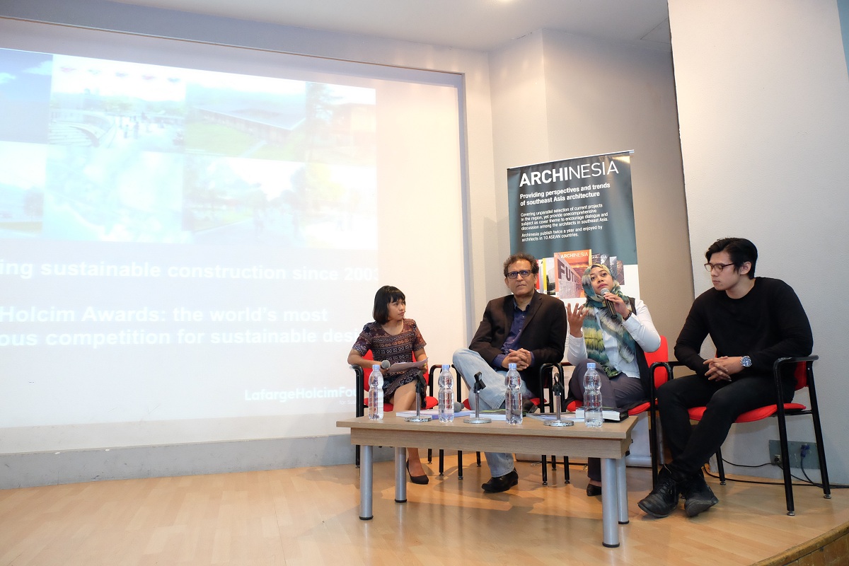 Dr Nirmal Kishnani, Juri LafargeHolcim Awards – Asia Pasifik, Sasha Media, Building Segment Manager Holcim Indonesia, Antonius Richard Rusli, Pemenang LafargeHolcim Awards ke-4, berbagi informasi dan pengalaman dalam berpartisipasi kompetisi LafargeHolcim Awards